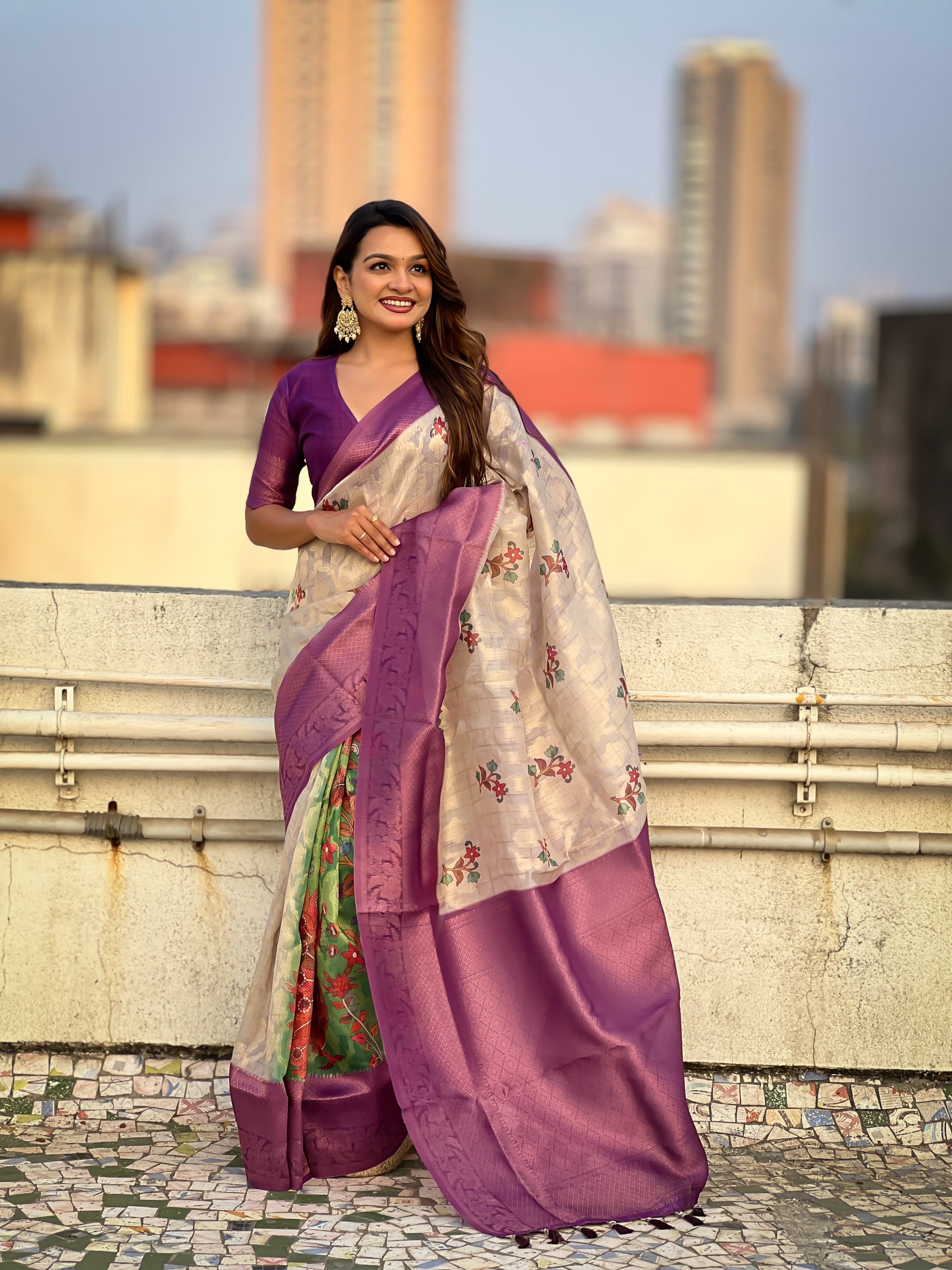 Paithani peacocks, mango motifs, or floral butis
